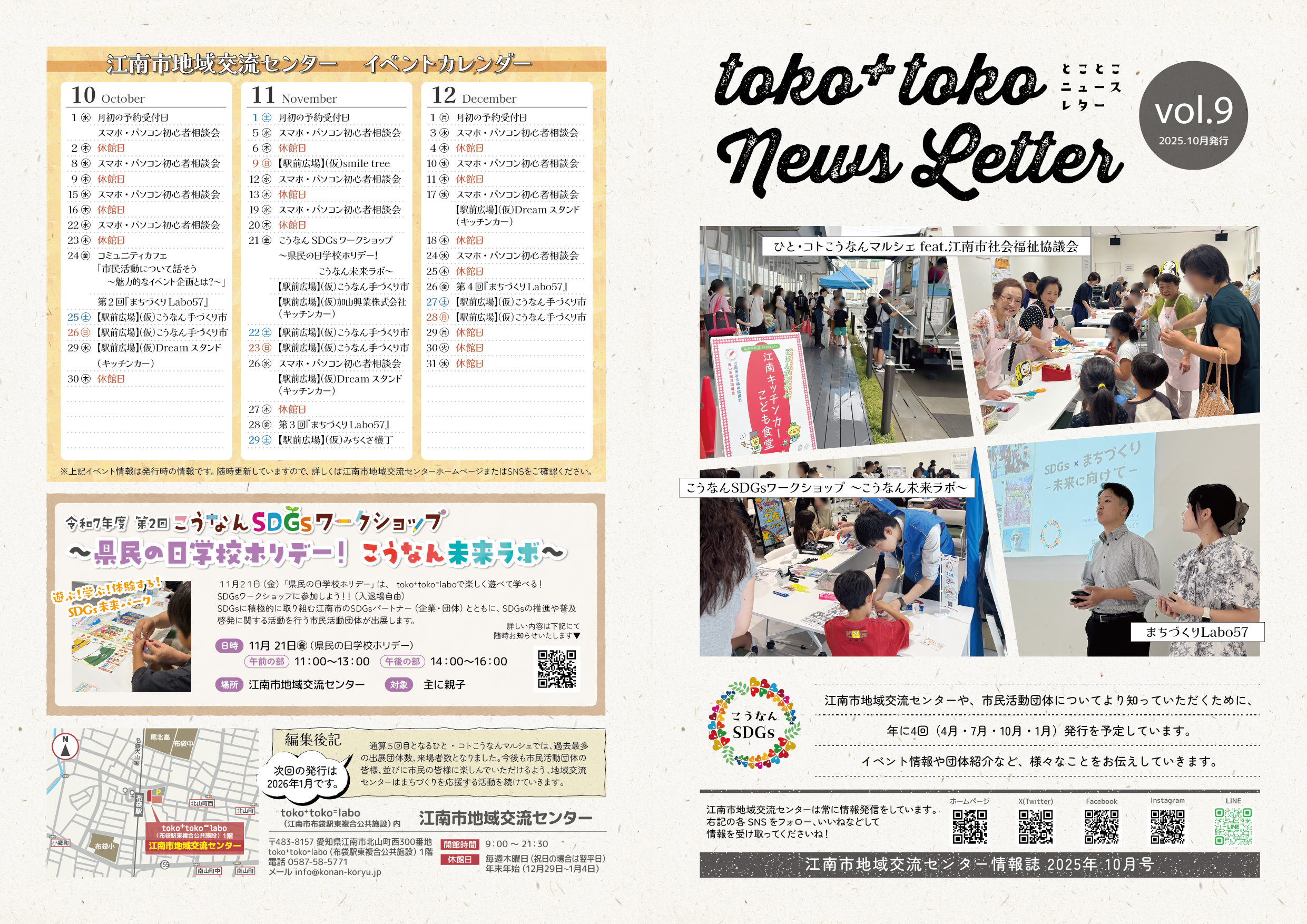 江南市地域交流センター発行の情報紙「toko⁺toko News Letter」の vol.9を発行しました!