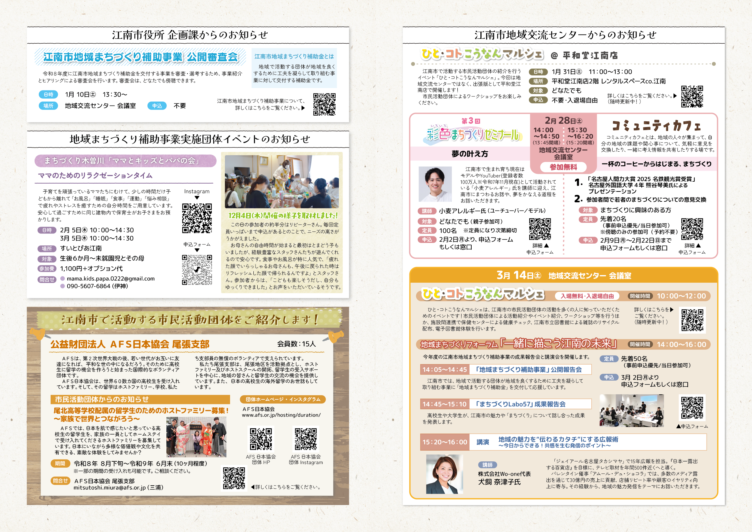 この情報紙は、江南市地域交流センターや、市民活動団体についてより知っていただくために年に4回(4月・7月・10月・1月)発行しています。