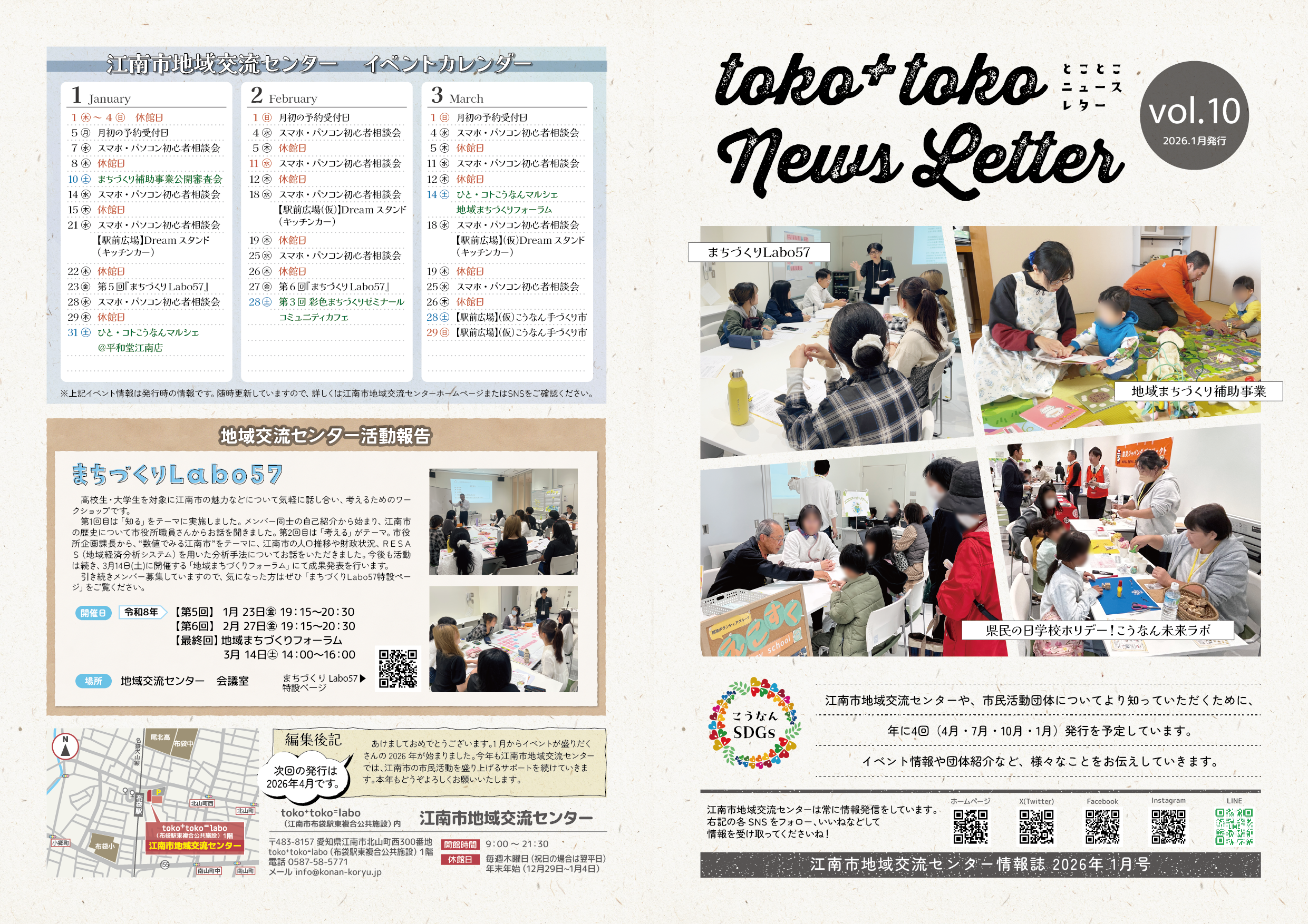 江南市地域交流センター発行の情報紙「toko⁺toko News Letter」の vol.10を発行しました!