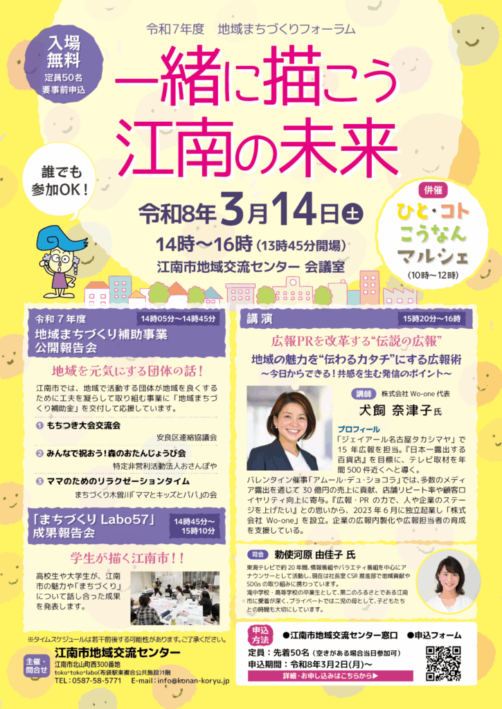 高校生や大学生が、江南市の魅力や「まちづくり」について話し合った成果を発表します。